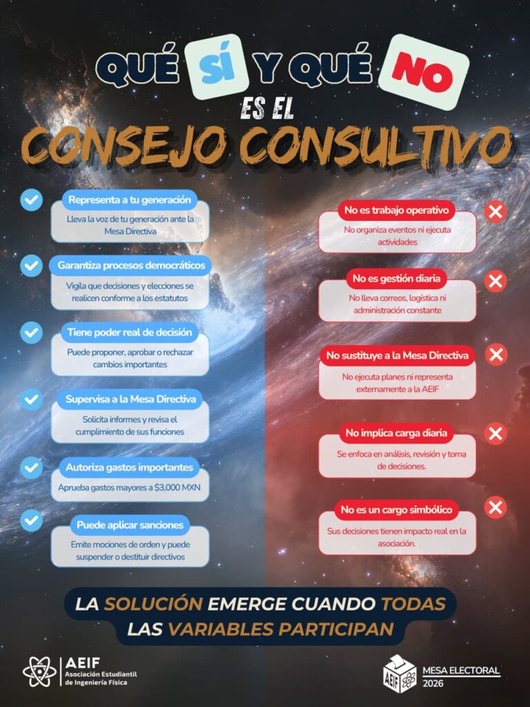 ¡Mantente al día con las últimas convocatorias y actividades de la Asociación Estudiantil de Ingeniería Física! Aquí encontrarás información sobre nuestros eventos, talleres, concursos y oportunidades de participación. No pierdas la oportunidad de formar parte de nuestras iniciativas y seguir impulsando el conocimiento y la innovación junto a nuestra comunidad.