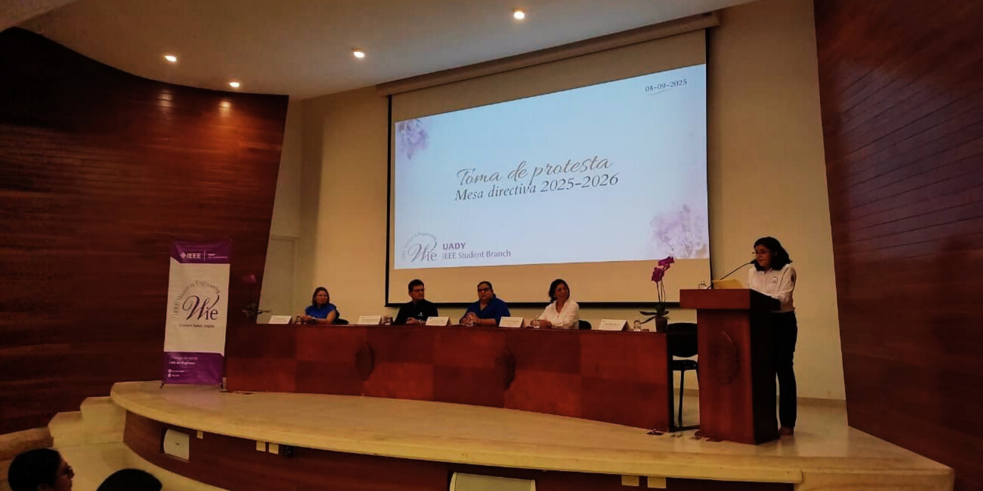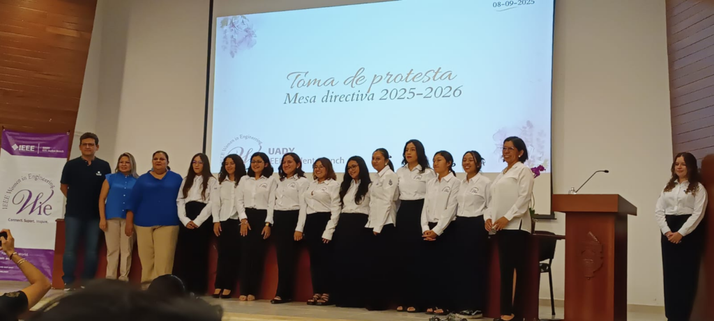 El lunes 8 de septiembre de 2025 se realizó la toma de protesta del capítulo estudiantil Women In Engineering (WIE IEEE UADY) en el Aula Magna de la Facultad de Ingeniería, en la cual se presentó a la primera mesa directiva: Gabriela Yasmin Vidales Ayala como presidenta, Odette Scarlett Pavón Durán como vicepresidenta y Julisa Lourdes Prieto Díaz como secretaria administrativa.